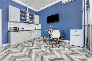 2. Кухонная зона: холодильник; электрическая плита; печь СВЧ; посуда; приборы; бокалы; электрический чайник; капсульная кофемашина (комплимент 10 капсул).