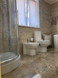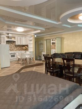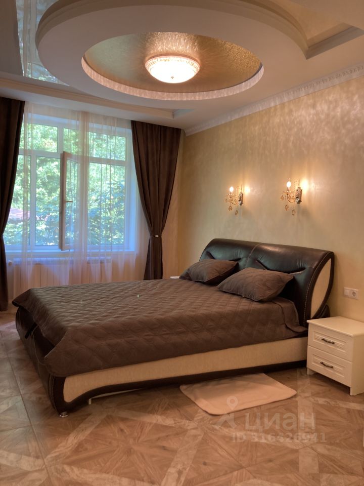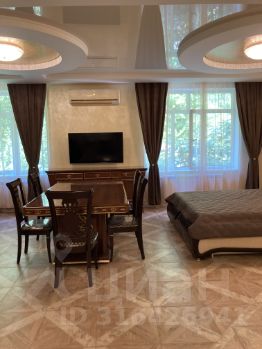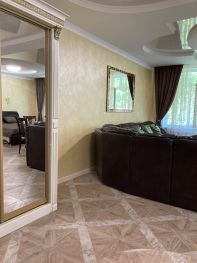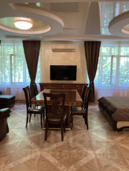 Сдаётся посуточно новая роскошная Квартира студийной планировки большой площади, расположенная на 4 этаже 5-тиэтажного двухподъездного частного домовладения в тихой элитной части административного центра Лазаревского в шаговой доступности от ЖД вокзала, бесплатной автопарковки, к/т Восход,сетевых продуктовых магазинов Магнит, Пятёрочка, Красное Белое, Центрального рынка,двух аквапарков, дельфинария, скверов с детскими площадками и парка развлечений по адресу: Победы 90. До моря и оборудованных пляжей Центральной набережной , предлагающих услуги комфортного отдыха и морских развлечений ( Гренада и тд),5-7 минут по прямой без подъёмов. Апартаменты расположены в непосредственной близости от многочисленных ресторанов, кафе, шашлычных, мест общественного питания и пекарен,торговых палаток по продаже фруктов/овощей и курортных товаров,но без ущерба для возможности круглосуточного отдыха проживающих в условиях тишины и спокойствия и без почти круглосуточной музыкально - шумовой нагрузки, характерной для проживания в непосредственной близости к пляжам побережья. Большие видовые окна апартаментов выходят на ярусный лес субтропиков . Дизайнерский евроремонт из экологичных материалов , кожаная мебель, итальянская мебель ( столовая группа и тд),шкаф-купе, большая классическая кухня. Студия предполагает комфортное размещение 6 - 7 гостей разного возраста ( большая двуспальная кожаная кровать,угловой кожаный диван-трансформер с несколькими комбинациями спальных мест, комфортный выкатной диван-кровать). Большой ТВ( 50 диагональ) закреплён на поворотном кронштейне для удобного просмотра из любой зоны отдыха .Студия оснащена всей необходимой бытовой техникой: -кондиционер , -утюг/гладильная доска/сушилка для белья , -стиральная машина, -профессиональный фен Valera, -холодильник Liеbherr, -электрические варочная индукционная панель и духовой шкаф, -микроволновая печь, -электрический чайник, -дизайнерская посуда,в том числе, для приготовления блюд,все кухонные принадлежности. Ванная комната наполнения люкс( угловая спа-ванна с гидромассажем, душевая кабина , раковина Villeroy & Boch, профессиональный стационарный фен Valera, унитаз/биде,стиральная машина). Текстиль для комфортного отдыха европейского качества. Горячее водоснабжение и отопление обеспечивается собственной котельной . Для детей малого возраста бесплатно предоставляются новые детские кроватки со всем текстилем,кресло и посуда для кормления,прогулочные коляски от Peg-Perego/Италия до более лёгких моделей, детские велосипед и самногочисленные надувные изделия для морских развлечений.