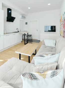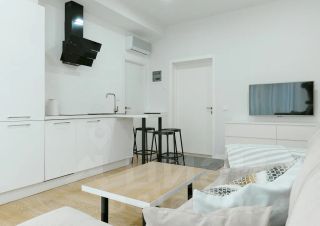 — 2 комнаты (спальня — двуспальная кровать 180 с ортопедическим матрасом, гостиная с большим диваном со спальным местом 160 см.)