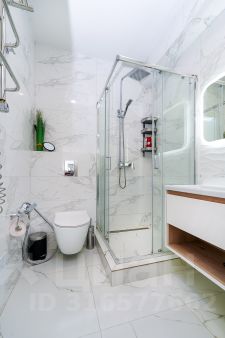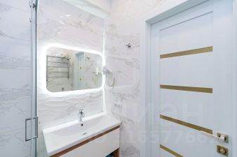 5. Совмещенный сан-узел: душ, туалет, полотенцесушитель, большое зеркало с подсветкой.