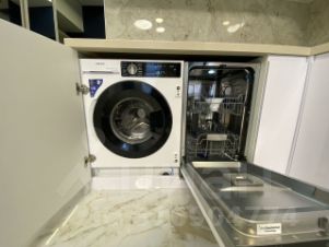 Техника: кондиционер, холодильник, плита, микроволновка, стиральная машина, телевизор, фен, утюг