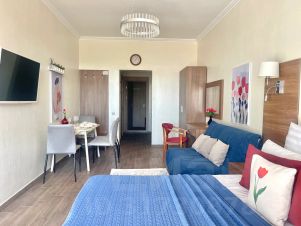 Доpoгиe гости! Предоставляем стильные и уютные апартаменты в современном ЖK "Сан Марина". Квартира готова разместить от 1-4 человек. Поздний выезд и ранний заезд возможен по предварительному coглacованию и пpи условии наличия свoбодныx меcт. У наc нe курят и нe проводят увеceлитeльныe мероприятия. Мы любим животных , поэтому с животными можно, по согласованию, кто ваш питомец. Оплата за усиленную уборку 2 тыс руб. единоразово. Наполнение квартиры: Две односпальные кровати, которые можно соединить, а также раскладной диван (140х190 см) для дополнительного спального места. Так же по запросу можем предоставить раскладушку, манеж, детскую кроватку, стул няня. Кухня, где есть все необходимое. Набор посуды, столовые приборы, посуда для приготовления еды, варочная панель, холодильник с морозилкой, микроволновка. Сплит система Стиральная машина, водонагреватель, утюг и гладильная доска. В ванной комнате имеется одноразовые тапочки, фен, шампунь, кондиционер, гель для душа, мыло, полотенца двух размеров на каждого гостя. Телевизор с активной подпиской на КиноПоиск Окна занавешены шторами блэкаут Шоппер с двумя пляжными полотенцами, территория пляжа оборудована в летнее время шезлонгами и зонтами. Бесплатный Wi-Fi Локация квартиры: Выход на благоустроенный пляж со двора ЖК В радиусе 5 минуты пешком аптеки и продуктовые магазины, КБ. В 15 минутах ходьбы парк развлечений В 15 минутах Дельфинарий, Океанариум Множество кафе, ресторанов, мы посоветуем Вам лучшие Мы находимся напротив ЖД вокзала, что очень удобно