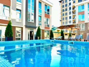 На территории комплекса гостей ждёт круглогодичный бассейн с подогревом. Купаться можно даже в январе. Чистая вода, стильное пространство, и никакой толпы.
