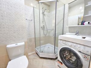 Стиральная машина, раскладная сушилка, плечики, утюг и гладильная доска, кондиционер, телевизор, фен, бесплатный wi-fi, чистое постельное белье и полотенца, туалетные принадлежности.