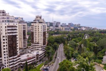 С панорамных окон квартиры открывается шикарный вид на море, парк, город, горы .