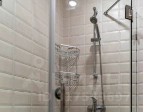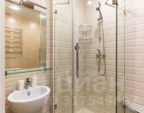 Ванная комната оснащена всем необходимым, включая душевую кабину, полотенцесушитель, раковину и зеркало