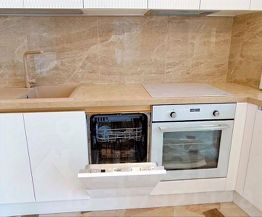В квартире есть две отдельные спальни и просторная, совмещенная кухня-гостинная с большим раскладывающимся диваном.