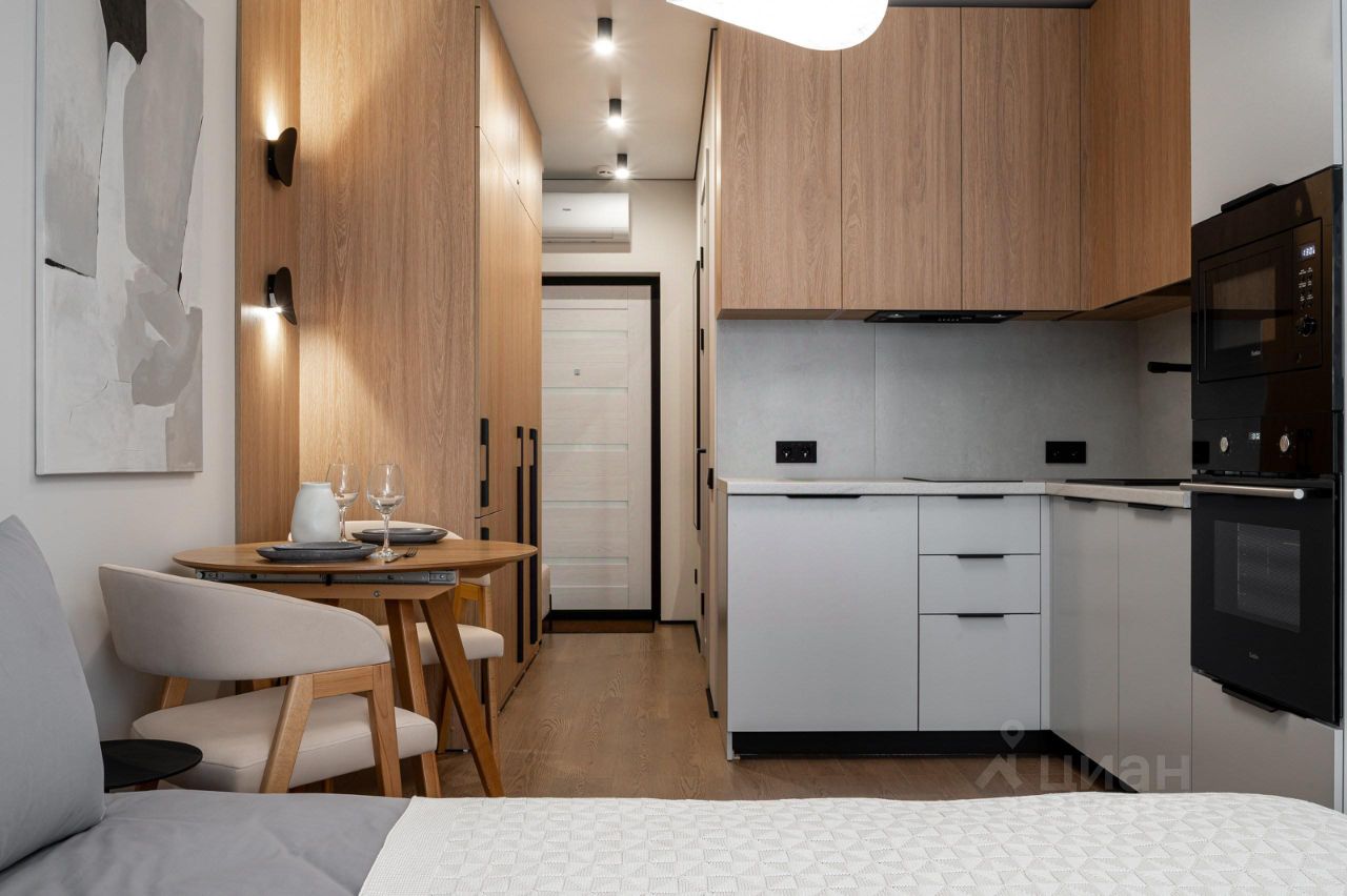 Студия с дизайнерским ремонтом рассчитана на 2 гостей.