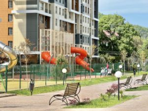 Закрытая охраняемая территория, детские и спортивные площадки.