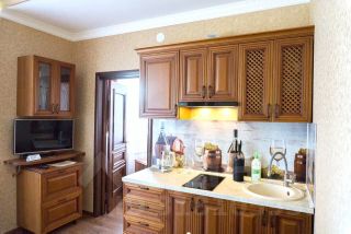 Апартамент укомплектован по системе "ВСЕ КАК ДОМА" : двуспальная кровать с ортопедическим матрасом Диван-кровать 140/200 Балкон с ротанговой мебелью Обеденный стол со стульями Рабочая зона с зеркалом Телевизор