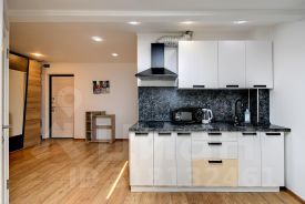 кухонный гарнитур, обeденная зона и посуда,