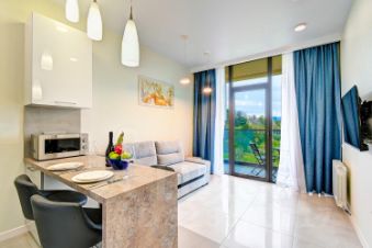 Неподалёку: Сочинский дендрарий, Пляж Солнечный и Пляж Цирк. Хотите оставаться на связи? В апартаментах есть бесплатный Wi-Fi. Для путешественников на машине организована бесплатная парковка. Если вы путешествуете на машине, припарковаться можно будет на парковке рядом. Специально к услугам гостей, не упускающих возможность заняться спортом, фитнес-центр, тренажёрный зал и настольный теннис. Для тех, кто не представляет отдых без водных удовольствий, есть открытый бассейн. Берите питомца с собой. В апартаментах возможно размещение с домашним любимцем за дополнительную плату. Удобно для гостей с ограниченными возможностями: на верхние этажи гостей поднимает лифт. А ещё в распоряжении гостей гладильные услуги. В номере гостей ждут телевизор и халат. Оснащение зависит от выбранной категории номера.
