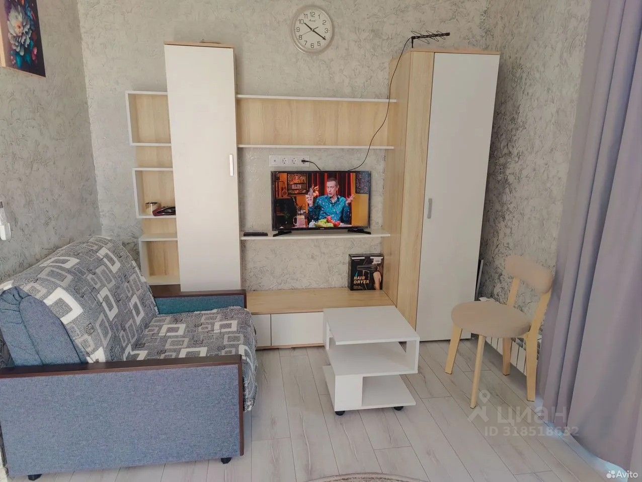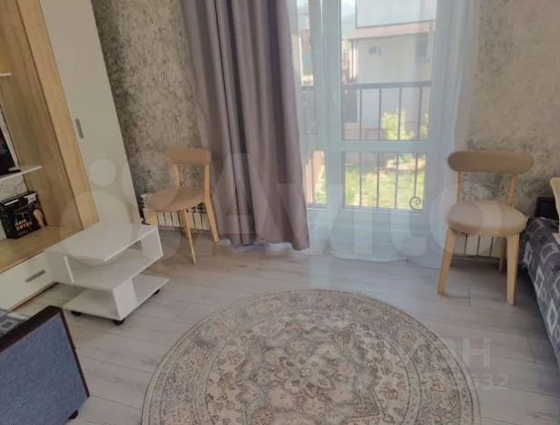 Уютная угловая студия в новом доме на 3 этаже трёхэтажного дома в тихом зелёном районе с видом на горы и на реку Мзымта, с французским балконом.