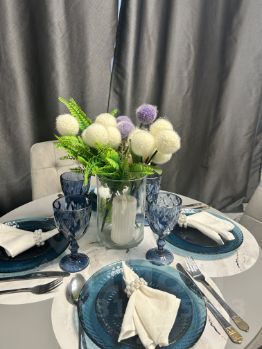 Оборудованный кухонный гарнитур со всей необходимой посудой и техникой (микроволновая печь, электрический чайник, холодильник, варочная панель, а самое главное СУШИЛЬНАЯ МАШИНА , Ваши вещи сухие полностью после стирки за 30 мин. Не надо ждать пока высохнут вещи на сушилке .