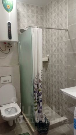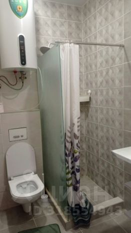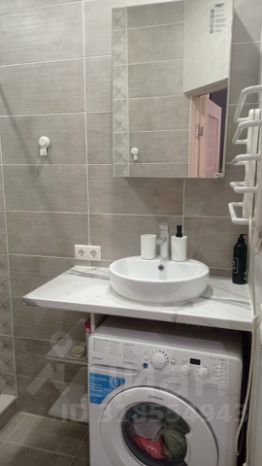 Санузел совмещенный, оснащен зеркалом, унитазом, душевой кабиной, стиральной машиной, феном.