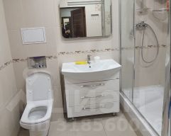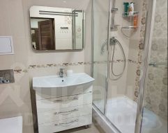 Санузел совмещенный, оснащен зеркалом, унитазом, душевой кабиной, стиральной машиной, феном.