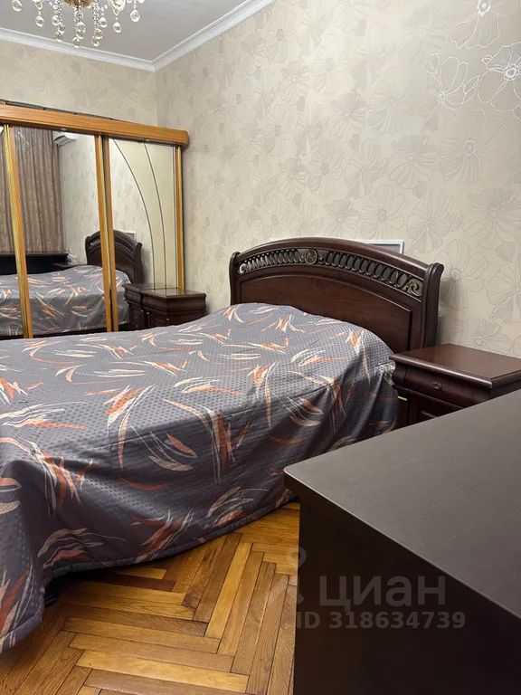 В одной комнате двуспальная кровать 1,8 м, во второй комнате большой диван, плюс раскладушка. Разрешено 5 человек.