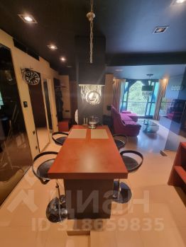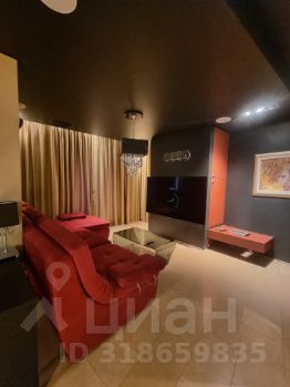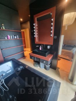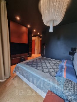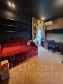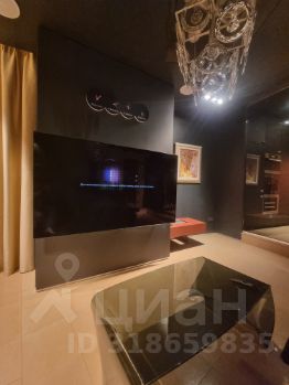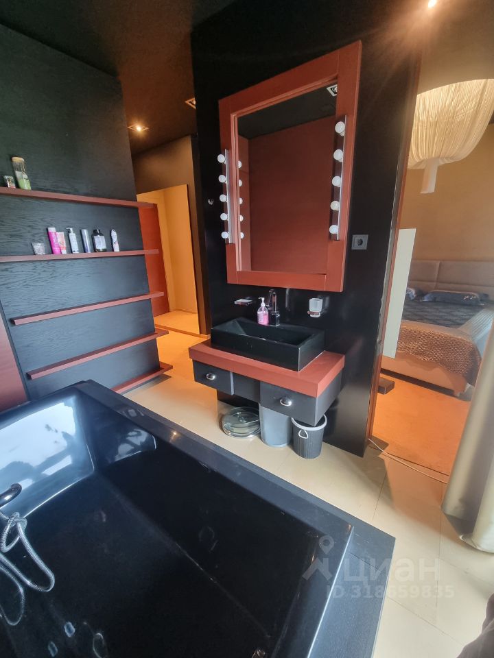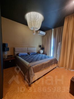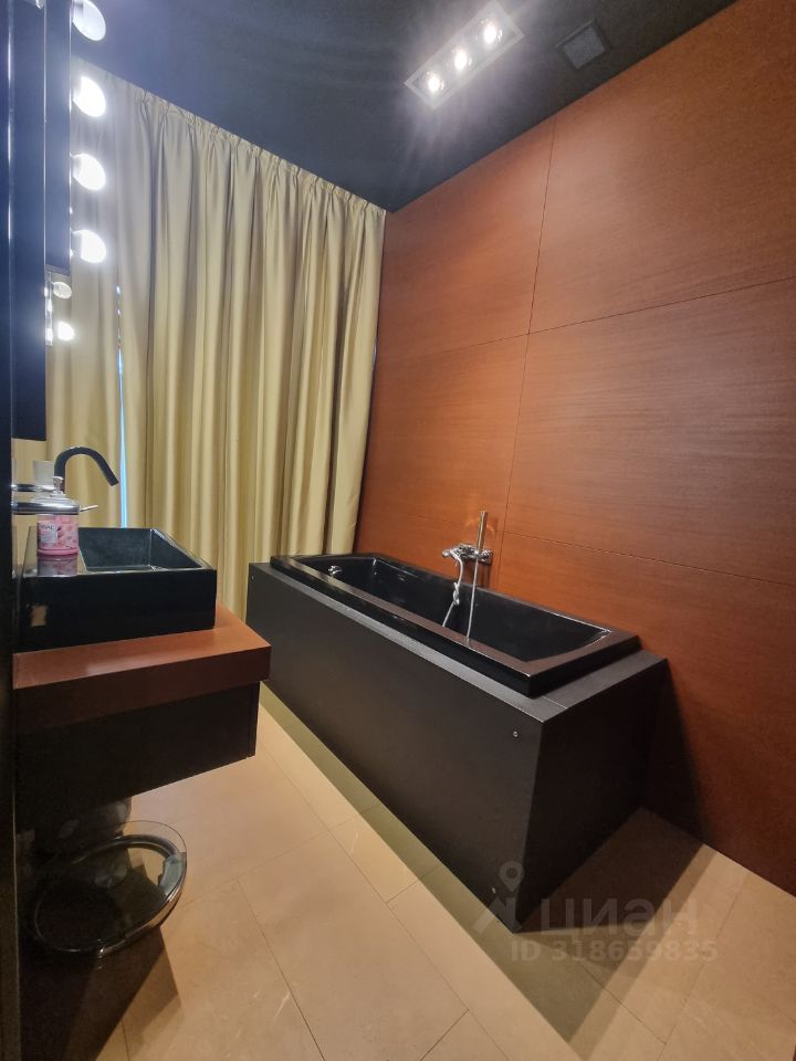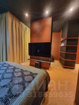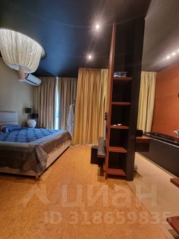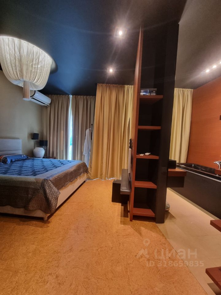 Кроме этого в спальне есть большие шкафы, отдельный санузел, огромный телевизор, акустическая система, панорамные окна со шторами блэк-аут.