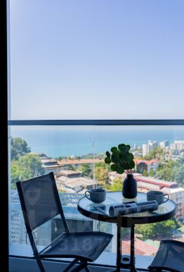 Красиво! Уютно! Удобно! Шикарный вид завораживает! Самые красивые закаты на Черноморском побережье. Есть всё, что нужно для комфортного отдыха. До Золотого треугольника Сочи 4 остановки автобуса. Для Вас открыты: Пляж Бытха (15 мин пешком), Набережная и центральные пляжи (10 мин на маршруте до остановки " Цирк" ) , Дендрарий, Морвокзал, и весь Сочи во всей своей красе. Можно с животными за доп плату , парко место на подземной стоянке для наших гостей то же сдается. Сдается от 6 суток.