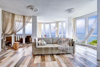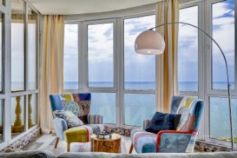 Панорамные окна с видом на море и лес, балкон на солнечной стороне для загара и наслаждения закатами в уютной обстановке.