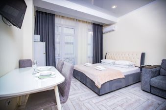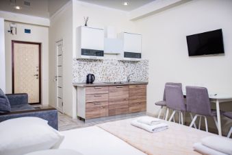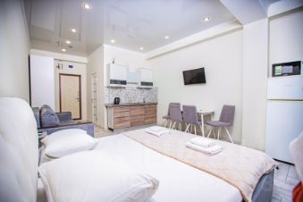 Всегда свежее постельное белье и полотенце, туалетный набор (гель для душа, шампунь, мыло, туалетная бумага, освежитель воздуха) теплые полы, кондиционер, фен, кухня со всей кухонной утварью, ЖК телевизор, сушилка для белья, большой зеркальный шкаф, СВЧ печь, стиральная машина, водонагреватель, полотенцесушитель, утюг и гладильная доска.