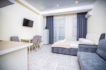Отличная дизайнерская студия от одного до четверых гостей, на втором этаже с балконом. В квартире современный ремонт, идеальная чистота.