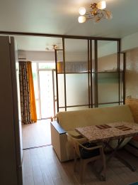 Дизайнерский ремонт. Полупрозрачная стеклянная раздвижная перегородка делает из одной комнаты - две. Всё современное, в рабочем состоянии. 2 раздвижных дивана, чердак - кровать ( 5 полноценных спальных мест). Уютный кухонный уголок, сан. узел, огромная двухместная ванная. 2-х камерный 2-х метровый холодильник Бош, стиральная машина Горинье, Два ЖК телевизора Шарп, кондиционер Скарлетт, микроволновка ЛЖ. Две электроплиты: одна - со стеклокерамическими нагревателями Беко и вытяжкой Горинье, другая - мини-плита с духовкой Мистери на лоджии. Большая прихожая, плюс гардеробная со множеством полок и штанги для вешалок. Занавески, подушки, одеяла, бельё, посуда...