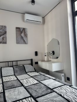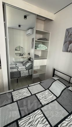 В квартире сделан современный евроремонт. Имеется открытый балкон. Есть все необходимое для комфортного проживания: кондиционер, холодильник, телевизор и стиральная машина. Пространство продумано до мелочей, поэтому здесь легко можно разместилась как мебель на кухне, так и в комнате. В ванной комнате установлена душевая кабина, гигиенический душ и туалет с инсталляцией, что добавляет комфорта вашим будням.