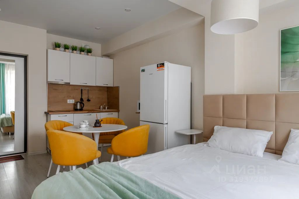 Свежая студия в цвете моря и солнца придаст атмосферу отдыха вашему проживанию в ней. Студия оснащена кондиционером, телевизором, в ней есть стиральная машинка, утюг, гладильная доска, балкон, бесплатный вайфай и много дизайнерских мелочей, которые украсят ваш быт.