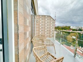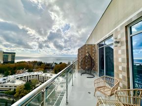Квартира распланирована в кухню-гостиную и спальню, выполнен дизайнерский ремонт. Есть вся мебель и техника для комфортного проживания. Большой красивый балкон с панорамным видом на море с ротанговой мебелью и качелей для отдыха.