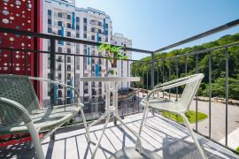 Погрузитесь в атмосферу комфорта и безмятежности в нашей стильной студии, расположенной по адресу: Сочи, ул. Искры, 88, корпус 6, кв. 193.
