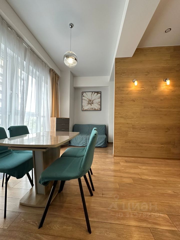 В квартире выполнен евроремонт, что делает её ещё более привлекательной для комфортного проживания. Здесь есть всё необходимое: на кухне и в комнате установлена современная мебель, а для вашего удобства — кондиционер, холодильник, телевизор и стиральная машина. Санузел совмещённый, оборудован ванной.
