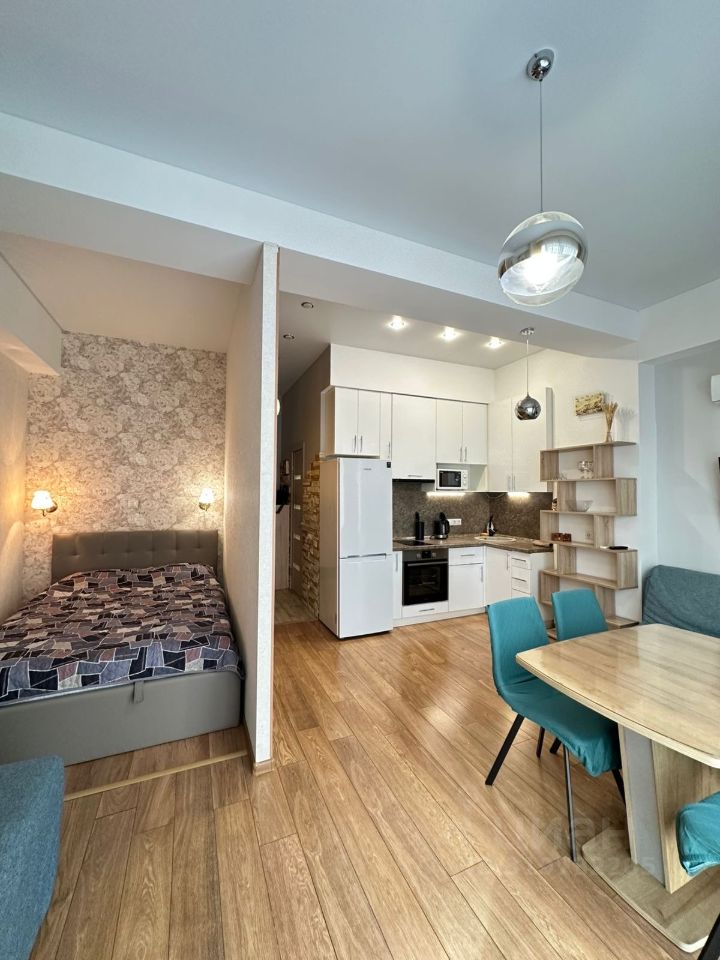 Предлагаю в аренду посуточно уютную квартиру-студию с выделенной спальней в живописном районе Сочи — микрорайоне Мамайка в Жк Посейдон в 150 м от моря. Квартира расположена на 5-м этаже 13-этажного дома, построенного в 2018 году. Окна выходят на улицу, что гарантирует много естественного света и свежего воздуха.