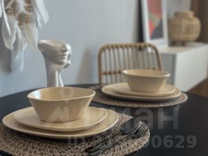 В кухонной зоне: холодильник, микроволновка, варочная панель, чайник, необходимая посуда, столовые приборы и принадлежности