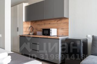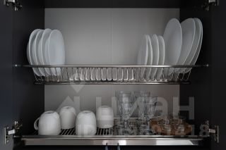 В кухонной зоне: холодильник, микроволновка, варочная панель, чайник, необходимая посуда, столовые приборы и принадлежности