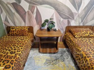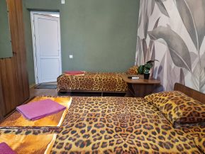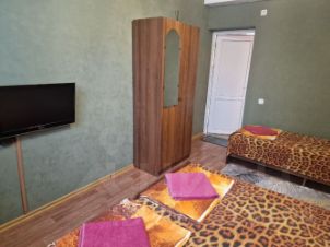 Трехместный номер эконом, с общим на три комнаты санузлом. Душ и туалет находится в 2м от двери номера, душ и туалет общий на этаже на три комнаты. В номере кондиционер, минихолодильник, телевизор. На общей территории есть кухня, стиральная машинка, утюг, гладильная доска, фен. В санузле туалетная бумага, гель для рук, гель для душа.