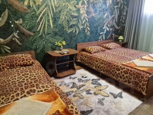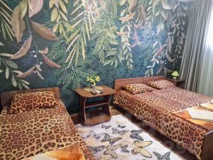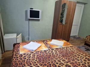 Трехместный номер эконом, с общим на три комнаты санузлом. Душ и туалет находится в 7м от двери номера, душ и туалет общий на этаже на три комнаты. В номере кондиционер, минихолодильник, телевизор. На общей территории есть кухня, стиральная машинка, утюг, гладильная доска, фен. В санузле туалетная бумага, гель для рук, гель для душа.