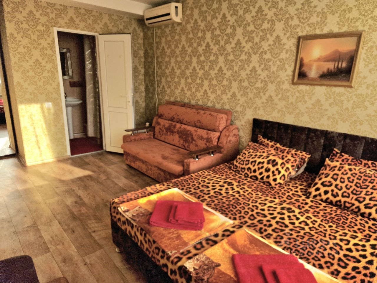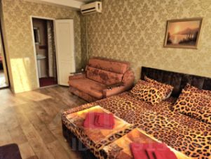 Четырехместный номер с удобствами, вмещает от до 4х человек. В номере кондиционер, минихолодильник, телевизор, фен - из техники, вся мебель, постельные принадлежности, 3 полотенца на одного человека, тапочки, набор для чистки зубов, туалетная бумага, гель для рук, шампунь, бальзам для волос, гель для душа. Уборка номера со сменой полотенец и постельных принадлежностей каждые пять дней, дополнительная уборочка со сменой белья, по желанию с 9:00 до 12:00 (1000руб за 1)