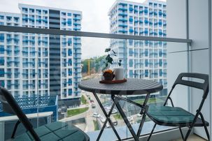 • Просторный балкон — отличное место для утреннего кофе или вечернего отдыха