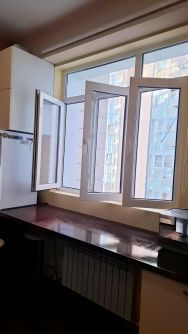 В квартире сделан современный евроремонт, который придаёт ей стильный и свежий вид. Обстановка продумана до мелочей: есть вся необходимая мебель как на кухне, так и в комнате. Для вашего удобства установлена полная бытовая техника: кондиционер, холодильник, телевизор и стиральная машина. Ванная комната оснащена душевой кабиной, что позволяет экономить время и воду.