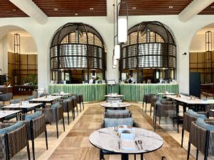 Ресторан Le Ri шеф повар Иля Захаров и бар Amber Sky Bar — на крыше отеля с видом на море.