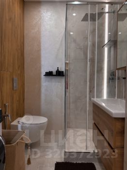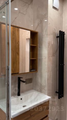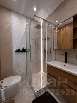 Зеркало с подсветкой, совмещенный санузел с душевой.