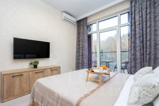 Просторная и светлая студия в ЖК премиум-класса "Аллея-парк". Рядом остановка, жд станция Дагомыс-15 мин до Центра Сочи, 30 мин до Адлера, 50 мин до Красной Поляны. Дом расположен в тихом и живописном районе. Рядом кафе, пекарни, супермаркет Пятёрочка, Магнит и рынок. До пляжа п. Дагомыс всего минут 15 пешком по ровной дороге.