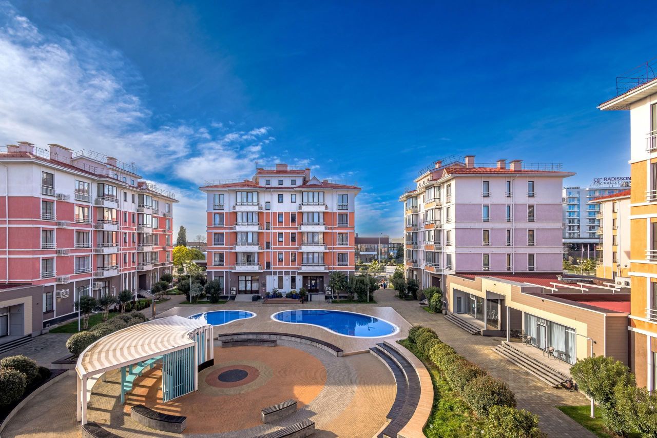 Двухкомнатные апартаменты 45 кв. м,с видом на бассейны! Подходят для 4-6 гостей, в апартаментах две спальни и большая гостиная, в спальне двуспальная кровать, в второй спальне двухъярусная кровать, в гостиной двуспальный диван. МЕСТОРАСПОЛОЖЕНИЕ: Апартаменты находятся в Олимпийском парке "ПГТ Сириус" в комплексе Sea Side с бассейнами напротив отеля Radisson 5* на второй линии от моря, до красивой олимпийской набережной 200-250 метров 5 минут пешком, оборудованный бесплатный пляж, морская вода там самая чистая. На территории дома есть два бассейна взрослый и детский (неподогреваемые), закрытый уютный внутренний двор с современной детской площадкой. Отельный комплекс расположен на закрытой охраняемой территории с бесплатной парковкой рядом с домом. РЯДОМ РАСПОЛАГАЕТСЯ: Тематический парк развлечений Сочи-парк Олимпийский парк Парк Южные культуры и Орнитологический парк Спортивный парк с бесплатным расписанием тренировок Поющие фонтаны на набережной Парк Монтера Лучшие рестораны Клёво,5642 Высота, Nino, Mare d Amore Продуктовые магазины Фабрика вкуса Остановка общественного транспорта рядом с домом АПАРТАМЕНТЫ ОСНАЩЕНЫ: Кухня полностью оборудована: большой холодильник, индукционная плита, посудомойка, электрочайник, микроволновая печь, комплекты посуды. В каждой комнате кондиционеры, скоростной WI-FI, кабельное ТВ, ЖК- телевизоры. Имеется фен, стиральная машинка, утюг, сушилка, пылесос, гладильная доска. Для каждого гостя предоставляются комплекты постельного белья, полотенца. Предоставим пропуск для бесплатной охраняемой парковки рядом с домом. По запросу предоставляется детский раскладной манеж с бельем и детский стульчик. Апартаменты на 3 этаже, есть большой лифт, удобно с колясками и велосипедами. ПРАВИЛА ЗАСЕЛЕНИЯ И ПРОЖИВАНИЯ: По договоренности заселение возможно раньше расчетного времени при наличии возможности. Заселение после 15-00 дня Расчётный час до 12-00 дня При заселении необходимо иметь документ удостоверяющий личность и возвратный залог в размере 5000 рублей. У нас Вы найдете всё, что нужно для комфортного отдыха! Будем Вам рады, добро пожаловать!