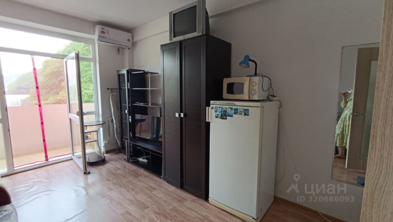 Сдается уютная студия в живописном районе Сочи, в селе Краевско-Армянское на Измайловской улице. Площадь квартиры — 23 кв. м, жилая — 18 кв. м, кухня занимает 3 кв. м. Квартира находится на 7 этаже 9-этажного дома. Высота потолков — 2,8 метра, что создает ощущение простора. Окна выходят как во двор, так и на улицу, поэтому в квартире всегда много света.