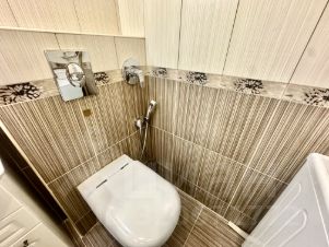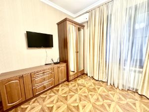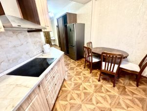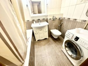 Квартира радует свежим евроремонтом и полностью готова к заселению. В наличии вся необходимая мебель как на кухне, так и в комнатах. Из бытовой техники есть кондиционер, холодильник, телевизор и стиральная машина, что обеспечит вам комфортное проживание. Санузел совмещенный, оборудован ванной, где можно расслабиться после долгого дня. Окна выходят во двор, поэтому в квартире всегда тихо и уютно.
