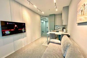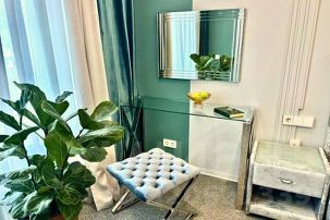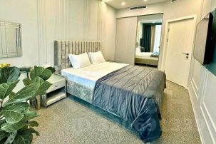 В просторных двухкомнатных апартаментах площадью 50 кв.м., с комфортом разместится до 4 гостей. В номере есть балкон с видом на город. В спальне двуспальная кровать, в гостинной раскладной диван с ортопедическим основанием. Много систем хранения для размещения личных вещей гостей. Полноценная кухня, большой холодильник, посудомоечная машина, микроволновая печь, индукционная плита и посуда для приготовления и сервировки. В апартаментах установлена ванна, имеется стиральная машина.