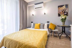 - Комфорт: кондиционер, Wi-Fi, затемняющие шторы, телевизор