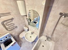 Санузел совмещен, стиральная машинка с верхней загрузкой.