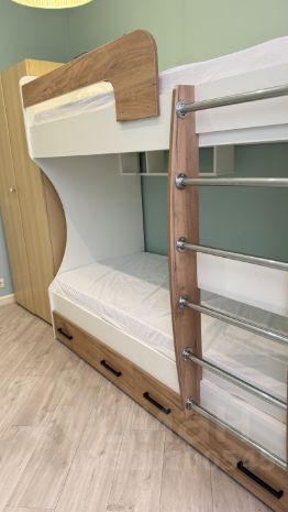 В небольшом пространстве (46 кв.м) нам удалось выделить 2 спальни. Каждый может комфортно расположиться в своей уютной комнате.